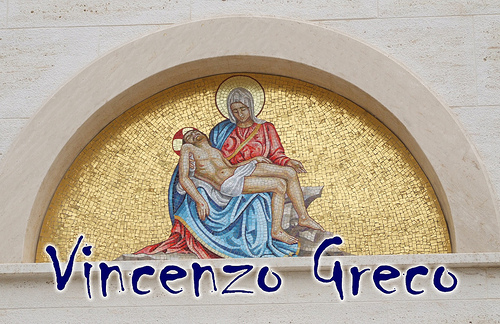 Il mosaico della Pietà realizzato da Vincenzo Greco rappresenta una delle sue opere più toccanti e spiritualmente intense. L’opera raffigura la Vergine Maria che sorregge il corpo senza vita di Gesù, un’immagine che da secoli commuove e ispira i fedeli.